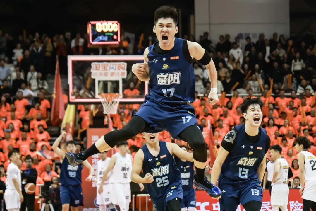 2025年11月28日晚,浙BA城市争霸赛B组迎来一组焦点对决元富证券,丽水队和富阳队比赛最后的读秒阶段,富阳队17号运动员章佳飞命中关键投篮后忘情庆祝 图源:潮新闻客户端