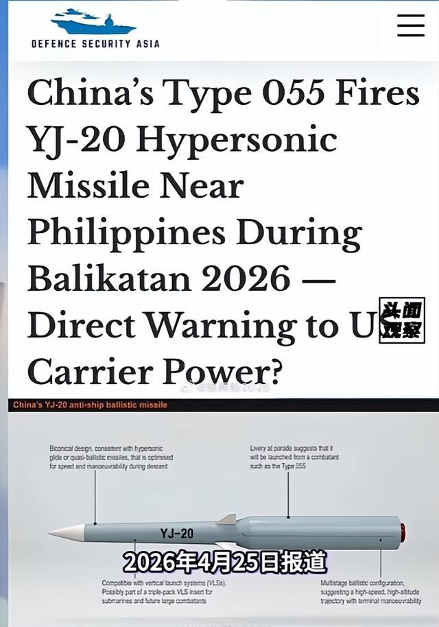 055在此试射既是警告菲律宾别引狼入室,也是敲打背后撑腰的势力,敢在南海搞事,你的后方要害,完全在我们的打击范围之内。