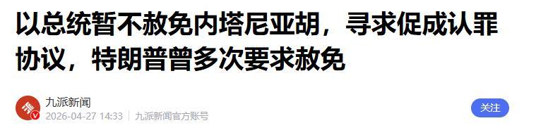 1.《以总统暂不赦免内塔尼亚胡,寻求促成认罪协议,特朗普曾多次要求赦免》2026-04-27 14:33 | 来源:九派新闻